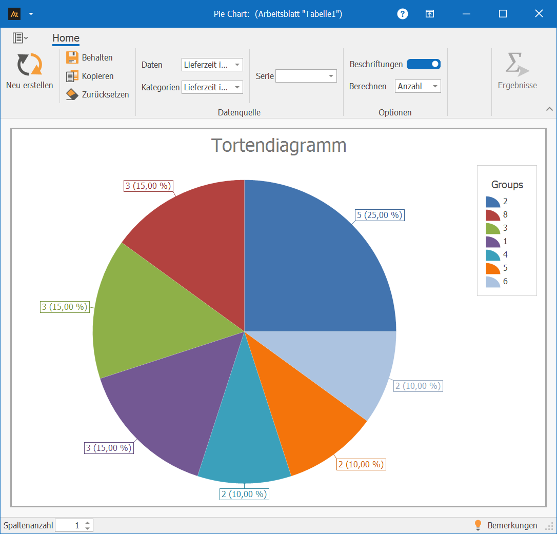 Beschriftung: Anzeige der absoluten Werte und/oder prozentualen Anteile der Kategorien.