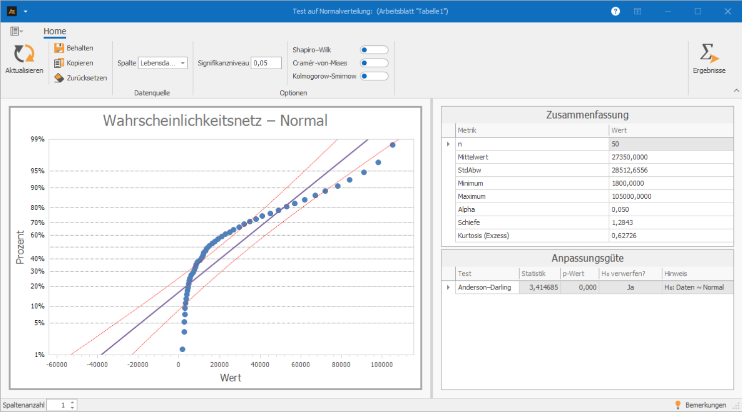 Der Anderson-Darling-Test bestätigt diese visuelle Einschätzung: